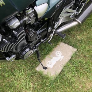 Kommer man med motorcykel kan man lätt parkera på gräset tack vare våra plattor vi lagt för det ändamålet.